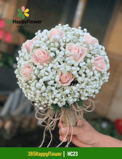 Bó Hoa Cưới Hồng Kem Mix baby – HC23